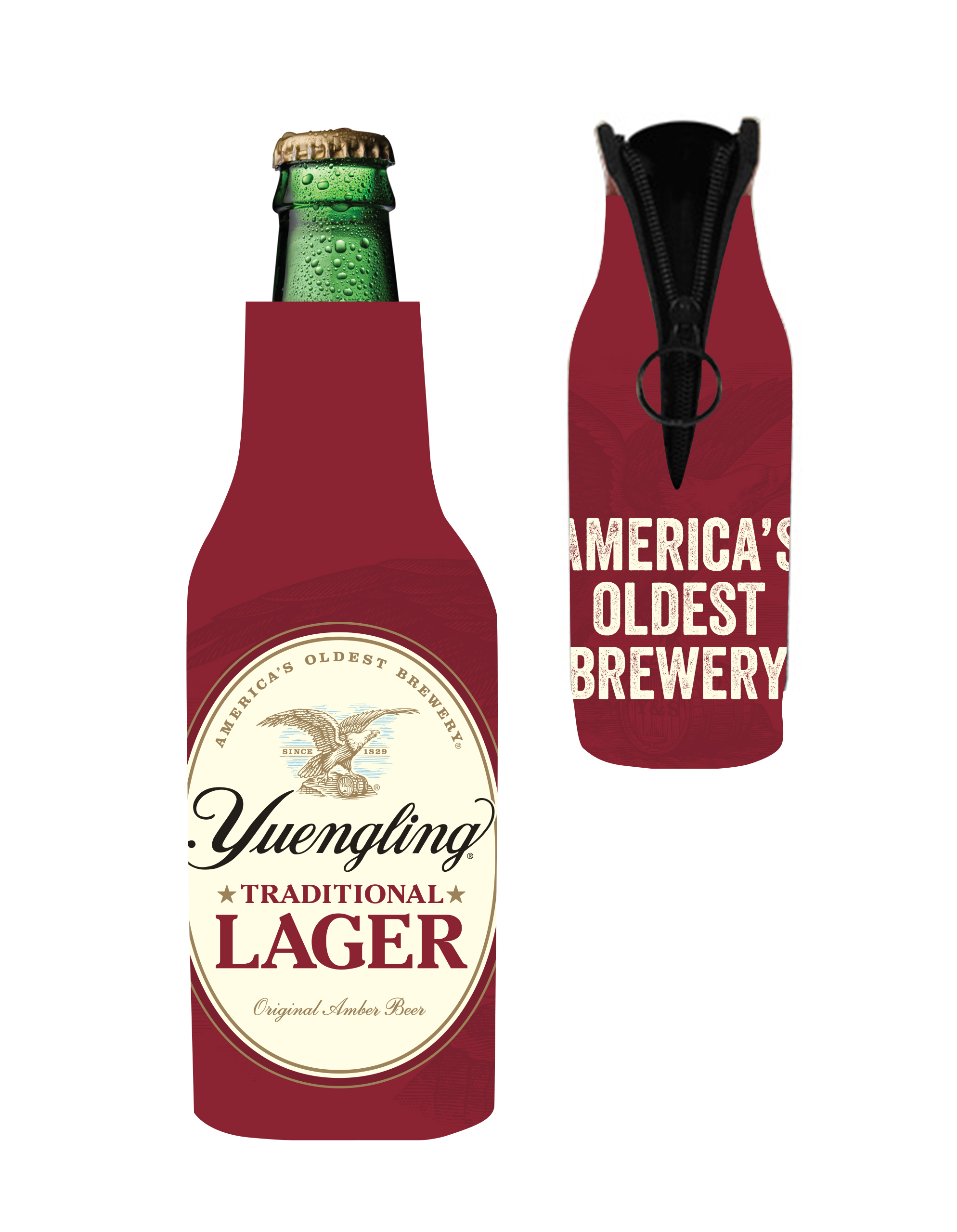 Keep your Lager cold with this beer holder designed for 12-ounce bottles. This two-sided beer holder is made of a neoprene type material featuring Yuengling Traditional Lager and America’s Oldest Brewery.