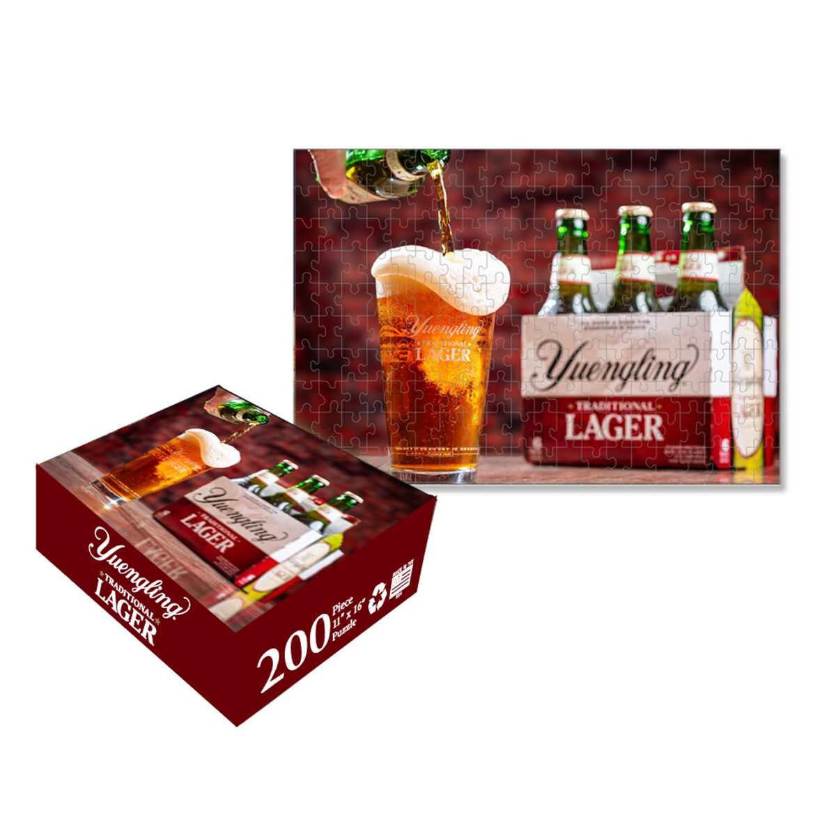 Do you love puzzles? Then you need this! Enjoy connecting 200 pieces to create the classic Yuengling Lager draft and 6 pack design. Size measuring 11″x16″. Made in the USA.