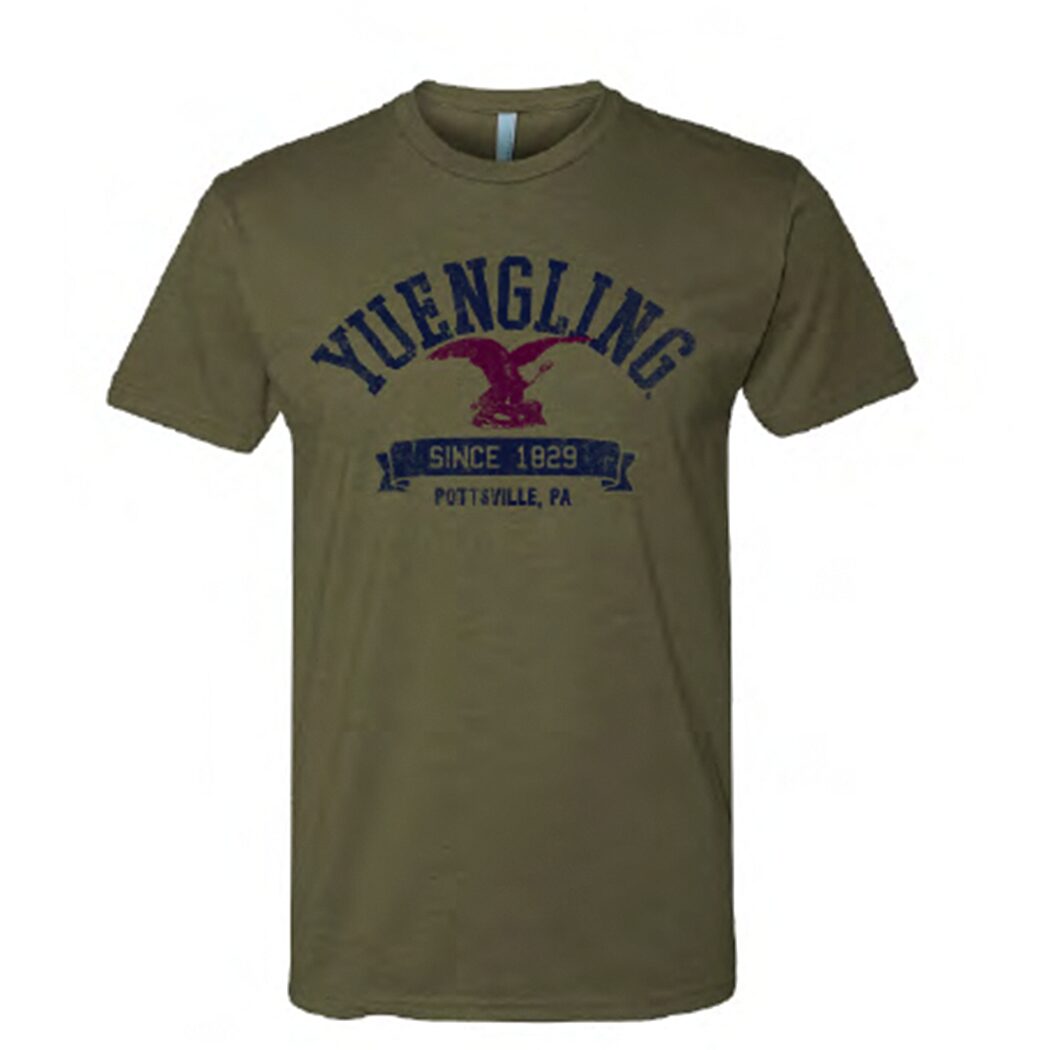 Show off your Yuengling pride with this classic olive green tee featuring our iconic eagle and “Since 1829” design. Made from soft, lightweight fabric, this shirt is perfect for everyday wear whether you’re at the bar, backyard, or brewery tour. Comfortable and stylish, it’s a timeless nod to America’s Oldest Brewery and our Pottsville, PA roots.