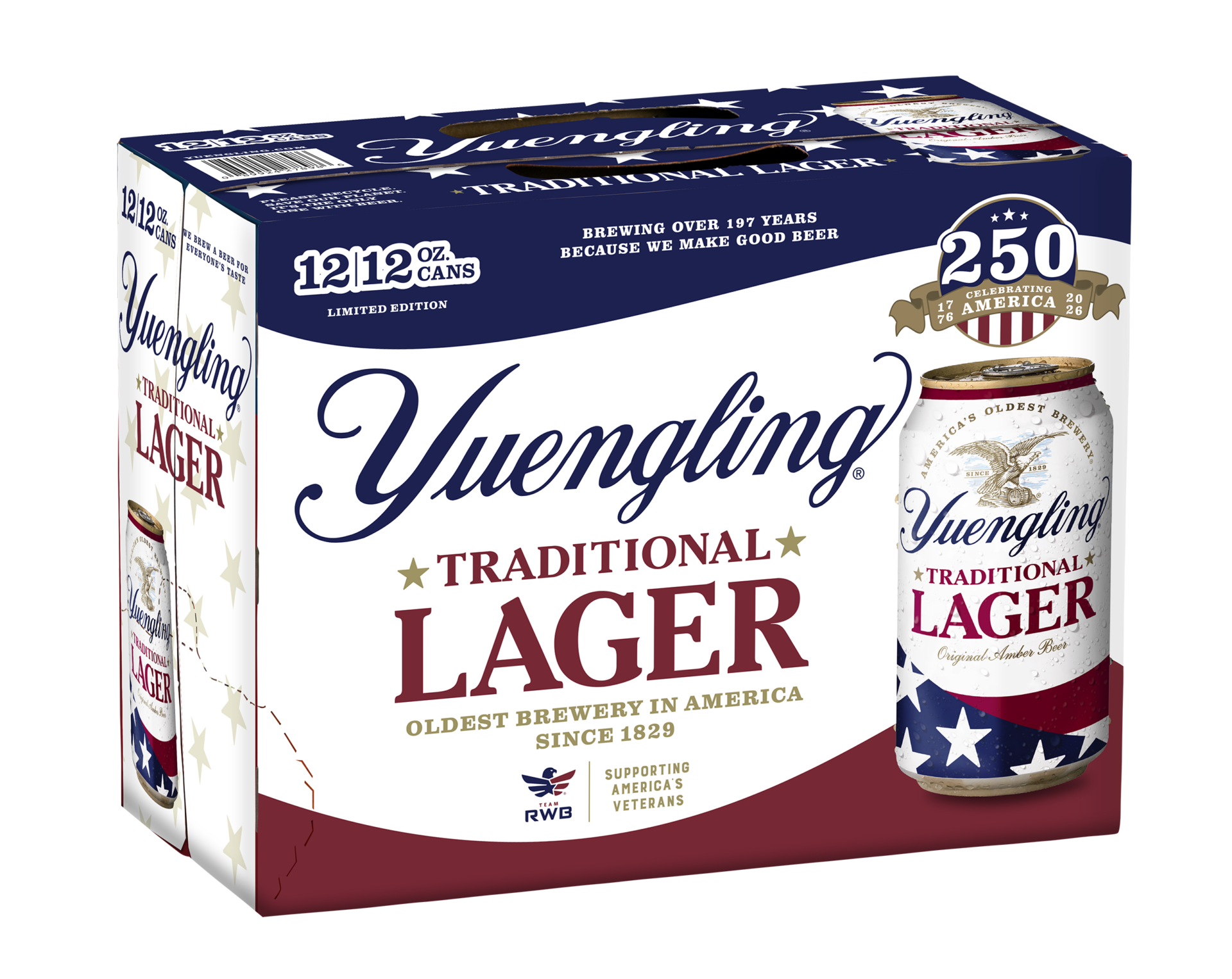 POTTSVILLE, Pa. (January 21, 2026) – D.G. Yuengling & Son, Inc., America’s Oldest Brewery, announced today the launch of its Limited-Edition 250th Anniversary Lager cans and packs to commemorate America’s Semiquincentennial in 2026. Featuring a patriotic red, white, and blue design, the packaging honors 250 years of American resilience and independence, while spotlighting Yuengling’s own 197-year history as a family-owned American brewery.
