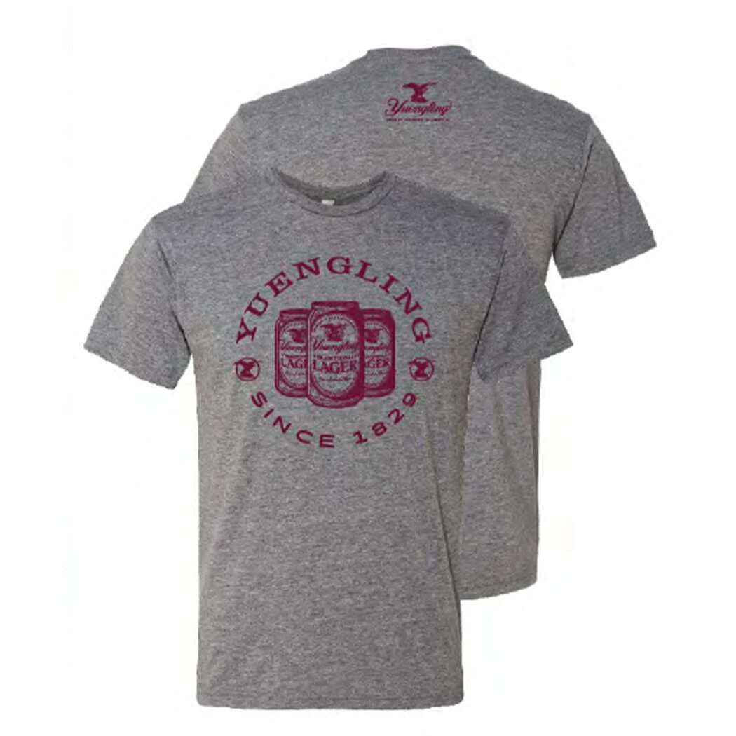 Rep your favorite beer in style with this Yuengling Lager Can Tee. Featuring a bold, vintage-inspired design of three Lager cans and the classic “Since 1829” detail, this shirt is a casual must-have. With a soft, breathable fit, it’s perfect for game days, brewery visits, or just kicking back with a cold one.