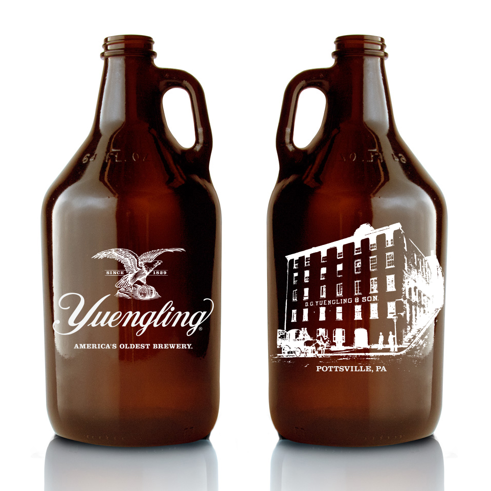 Tote around your favorite Yuengling with our traditional 64oz. amber growler. This growler is decorated on both sides showcasing our iconic eagle logo and America’s Oldest Brewery, located in Pottsville, PA. Proudly Made in the USA.