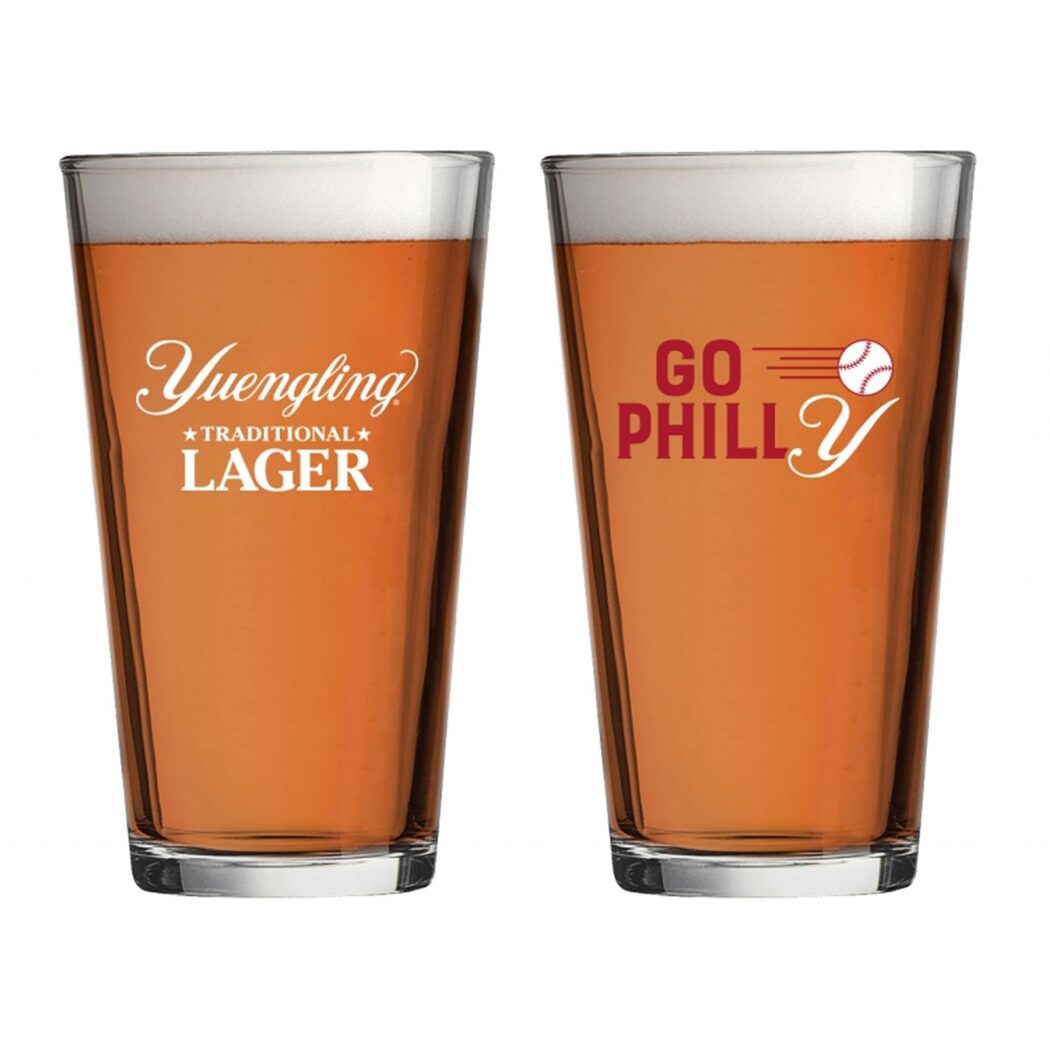 Raise a glass in our Lager Philly 16oz glass. This 2-sided glass features our Yuengling Lager logo and a “Go Philly” saying on the opposite side.